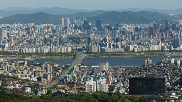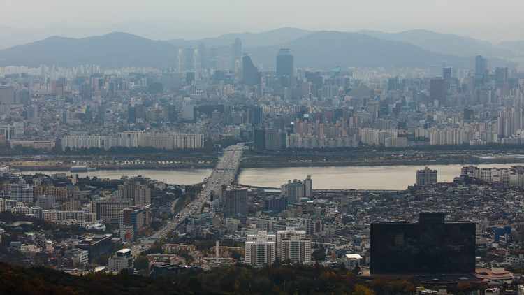S18, 아시아(Asia), 한국(Korea), 서울(Seoul), 도시(City), 빌딩(Building), 도심(Downtown), 강(River), 다리(Bridge), 한강(Hangang), 한남대교(Hannam Br), 교통(Traffic), 자동차(Motorcar), 도로(Road, Highway), 교차로(Crossroads), 올림픽대로, 강변북로, Zoom,